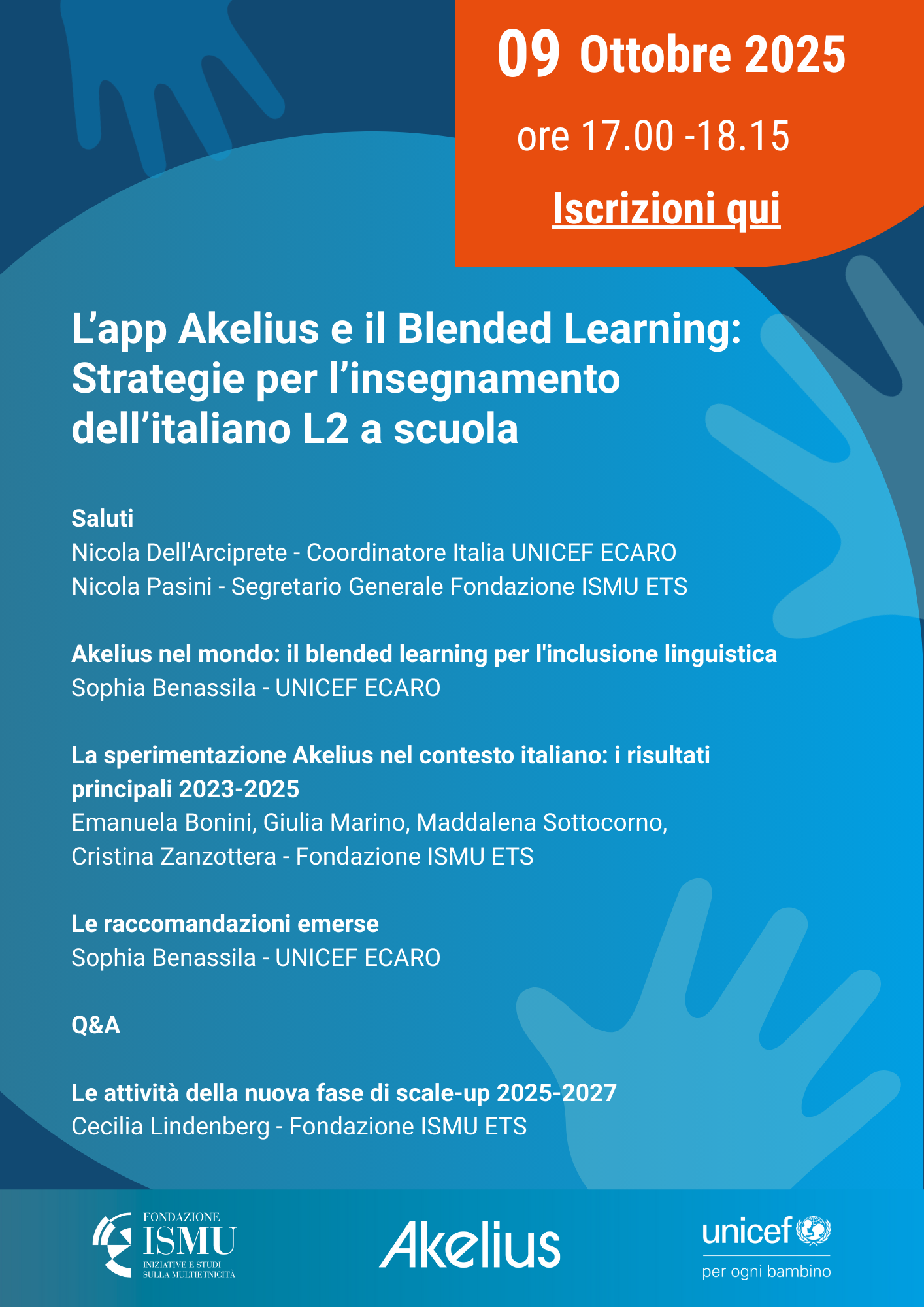 UNICEF in collaborazione con Fondazione Akelius e con la partnership di Fondazione ISMU ETS, promuove il progetto di diffusione e utilizzo della piattaforma Akelius per l’insegnamento dell’italiano L2 nelle scuole primarie e secondarie di primo grado.